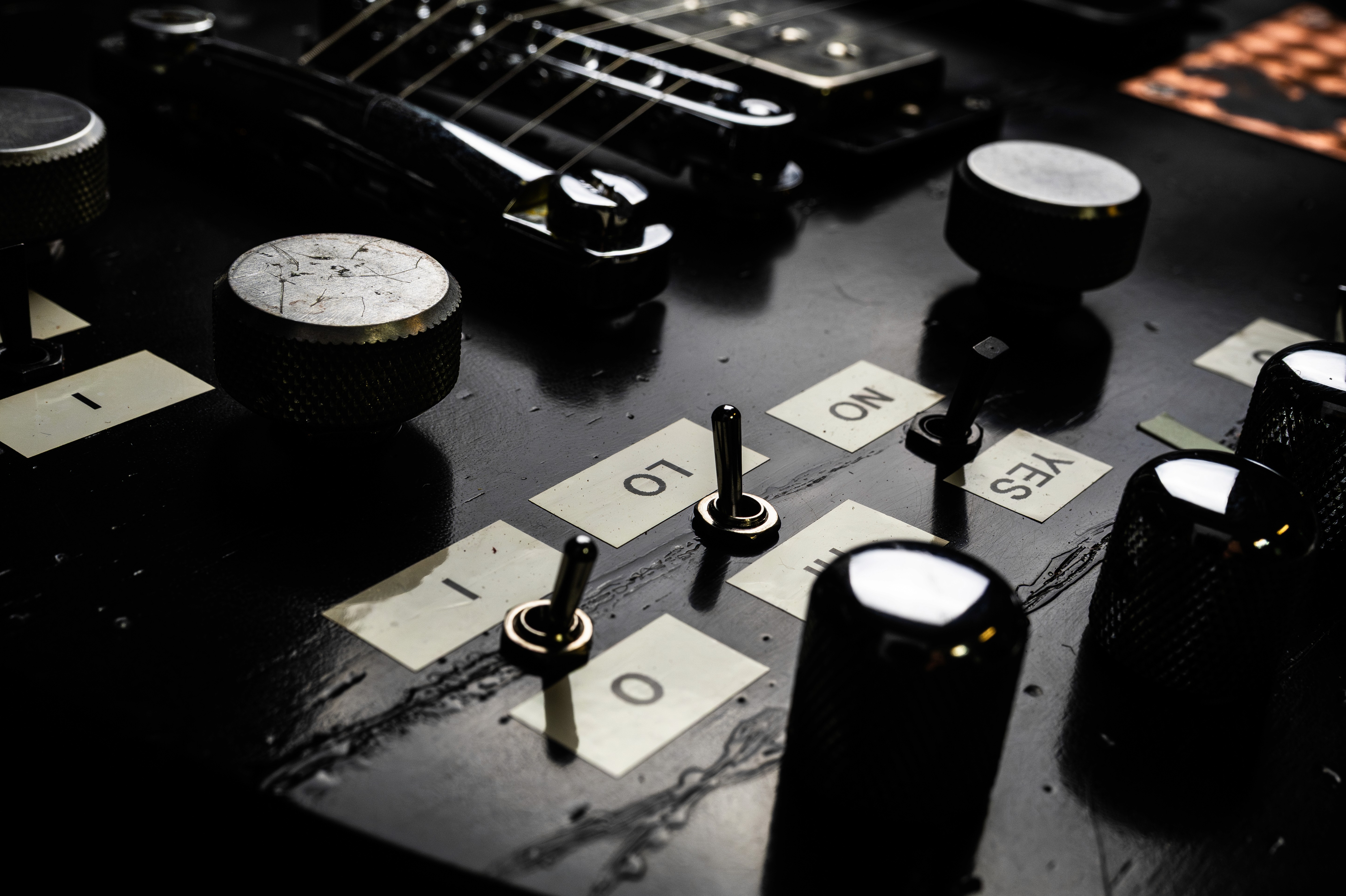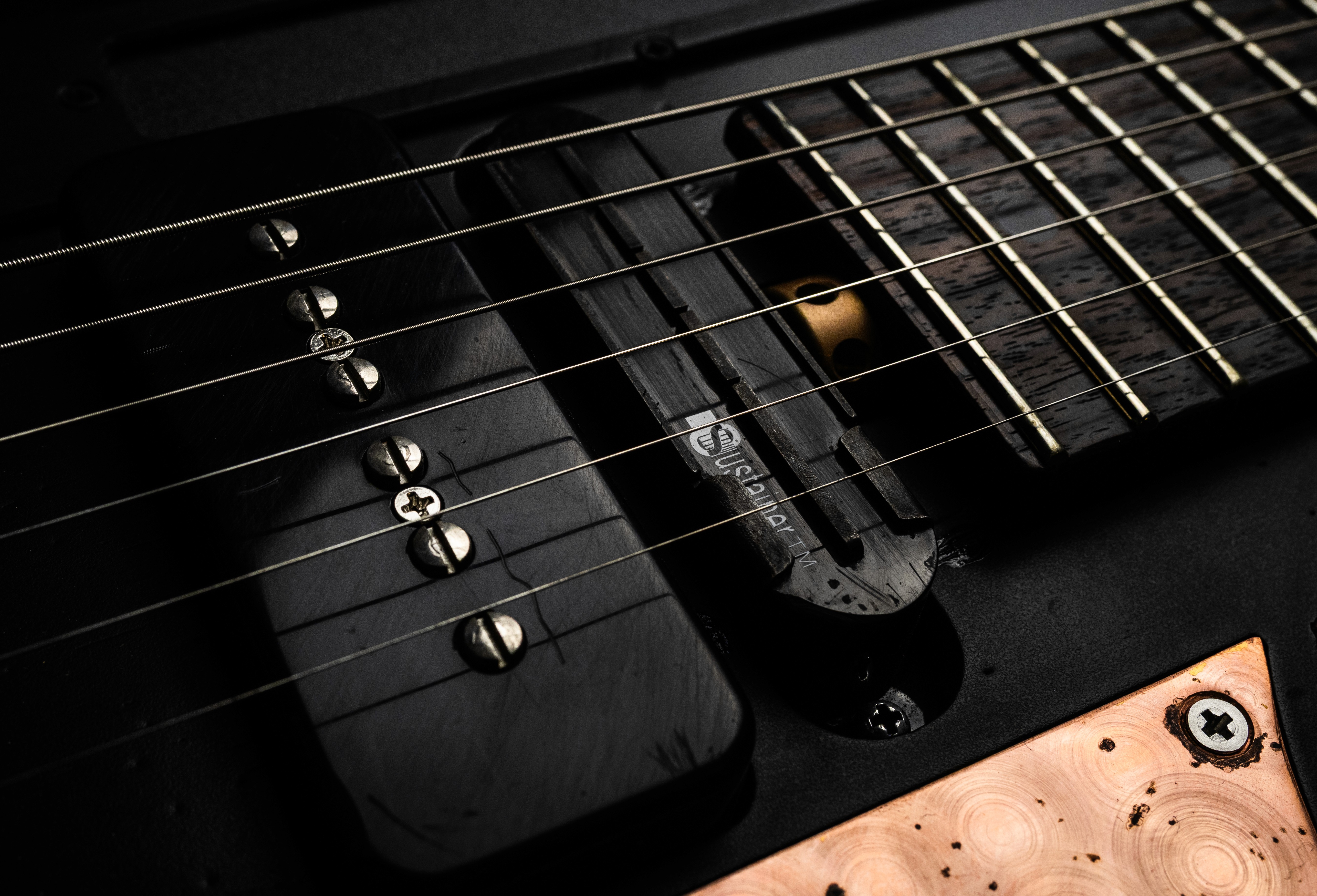 Black Edition’s most striking feature is the shaped copper plate sunk into the body at the upper horn. Wave your hand in front of it and it bends a wah tone sound into the players hand. How did it find its way into the guitar? Over to Matt…”Whenever we went to Japan, we used to always go and buy weird pedals. That was just a thing that we did. A lot of Chris’s synth pedals come from Japan. Certain shops we used to know in Tokyo had all the best collections and I remember seeing a Z-Vex Wah Probe there for the first time. I bought one, played it and said, “Let's do this!” The idea behind it was to get this kind of theremin vibe going…which if it was built into the guitar we could achieve with a sustainer holding the note, and the Z-Vex Wah probe giving the note the “movement”.