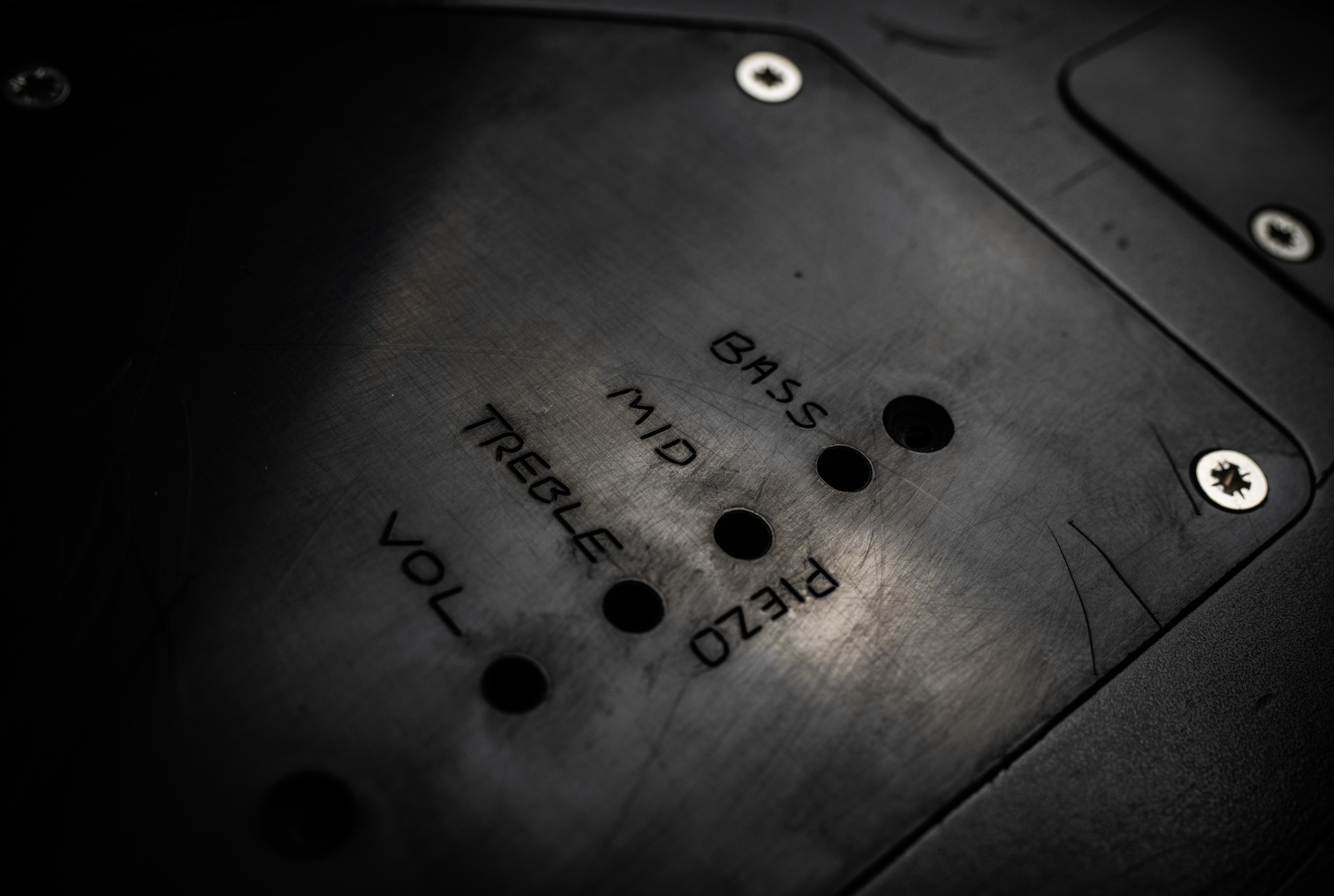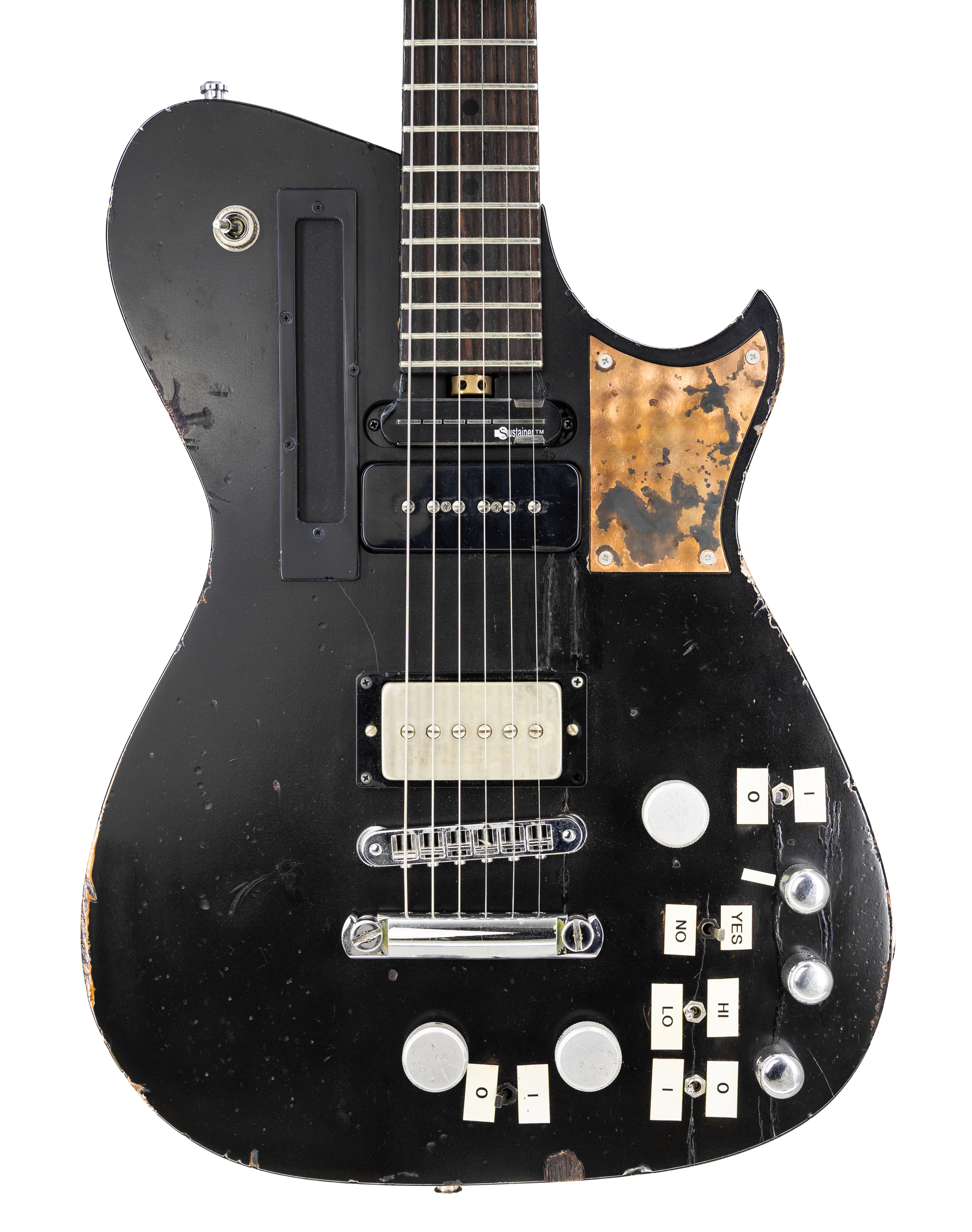 Controls Front: Volume, Tone, MIDI Rotary Programme Potentiometer, Sustainer Intensity, Wah Probe on/off, Bridge or Neck Pickup yes/no, Sustainer on/off, Sustainer 3-way Mode Toggle, Fuzz Factory on/off, Comp and Stab Controls