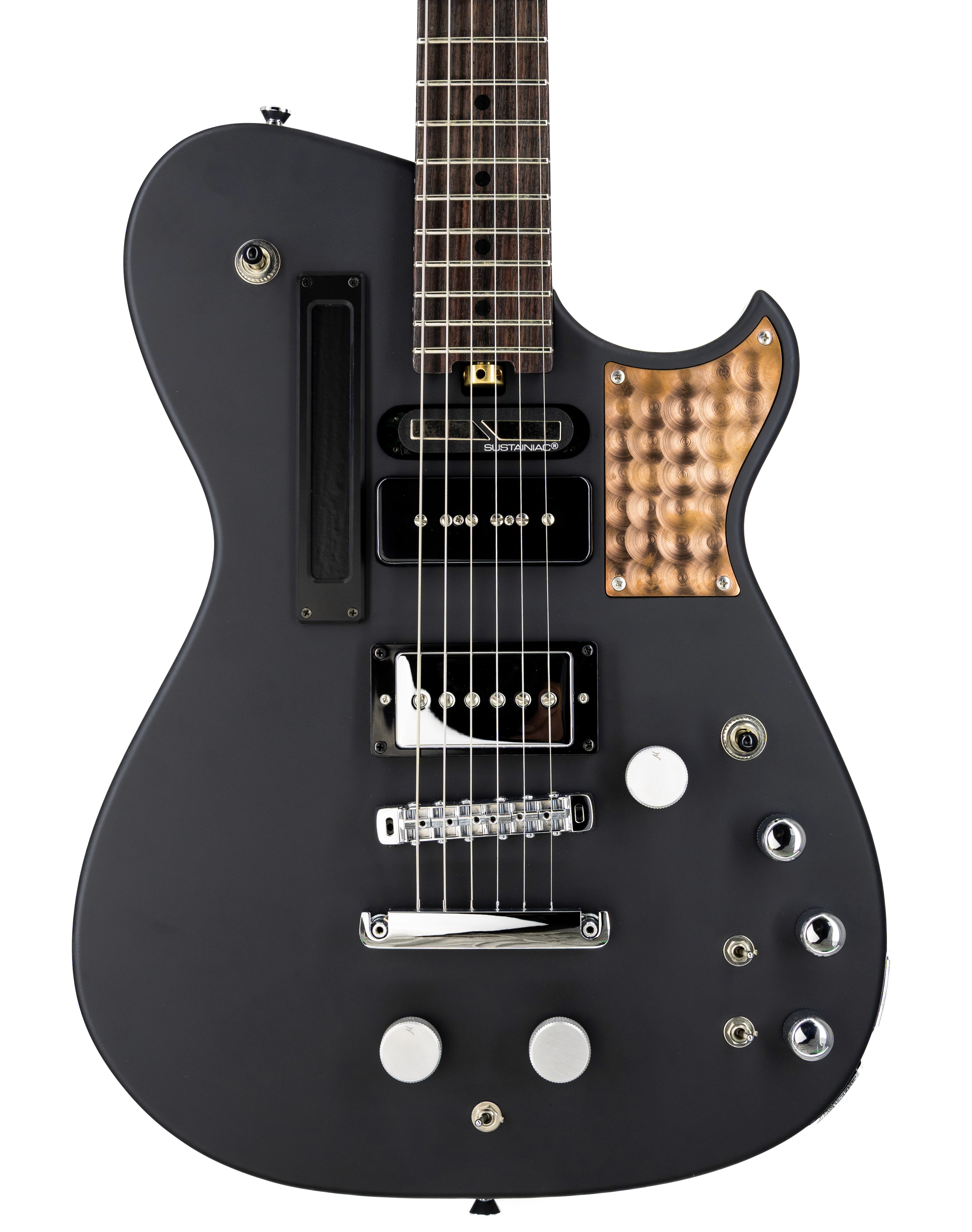 Controls Front: Volume, Tone (Push/Pull FLW), MIDI Rotary Programme Potentiometer, Sustainiac Drive, 3-way Pickup Selector, Sustainiac on/off, Sustainiac 3-way Mode Toggle, Fuzz Factory On/Off, Comp and Stab Controls
